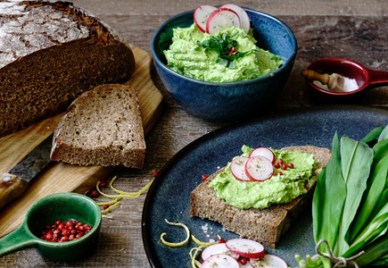 Spargel und Kartoffeln heiß anrichten und mit Senfsoße beträufeln sowie der Bärlauchbutter garnieren, Salat mit anrichten.