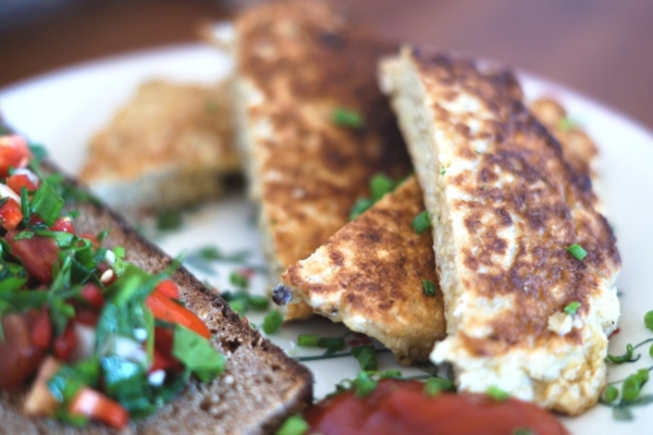 Zutaten für Omelett: 13 EL Haferflocken, 4 EL Weizenmehl, 4 Eier, 13 EL Milch, ½ TL Salz, ½ TL Pfeffer, 1 EL Paprikapulver, 3 EL Ghee