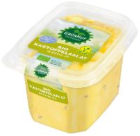 Kartoffeln* 65 %, Wasser, Rapsöl*, Zwiebeln*, Branntweinessig*, Rohrohrzucker*,Kräuter*, Gewürze*, Meersalz, SENFSAAT*, Verdickungsmittel: Guarkernmehl*.