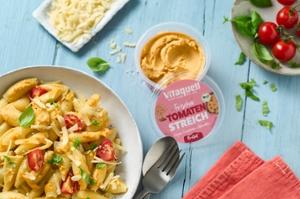 Vitaquell Bio Frischer Tomaten Streich auf Basis von Hafer und Mandelmehl ist die vegane Frischkäsealternative. Lecker, cremig und mit fruchtiger Tomatennote lässt er sich pur auf Brot oder zum Dippen und Toppen von Gemüse genießen. Auch erhältlich in den Sorten Natur, Garten, Chili und Provence.