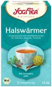 Süß, fürsorglich und sanft.Kräutertee mit Süßholz, Orangenschalen, Fenchel, Thymian und Ingwer.100% natürliche Zutaten, 100% BioTeebeutel 100% kompostierbar, recyclebare VerpackungMit der Anleitung für eine inspirierende Yoga-Übung auf jeder PackungMit motivierenden Weisheiten an jedem TeebeutelDer Kräuter-Tee Yogi Tea® Halswärmer Bio ist süß, warm und umhüllend. Dieser Teegenuss wärmt den Hals. Denn er wird viel beansprucht. Wir schmeicheln ihm mit diesem sanften, leicht fruchtigen, süßen Kräutertee. Angenehm verfeinert durch die Zugabe von Orangenschalen, Fenchel, Thymian, Süßholz und Ingwer.