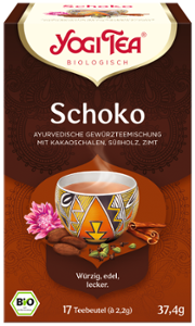 Lecker, würzig, wohlig.Bestehend aus Chai-Gewürzen und leckeren Kakaoschalen ist unser YOGI TEA® Schoko schon seit Jahren Kult. Die Kakaoschalen verströmen ein wundervolles Schokoladen-Aroma und verbinden sich mit den traditionellen YOGI TEA®-Gewürzen zu einer geradezu paradiesischen Teemischung. Am besten leicht gesüßt und mit einem Schuss Milch* genießen.*egal, ob mit einem Schuss Kuhmilch oder einer veganen Milchvariante.