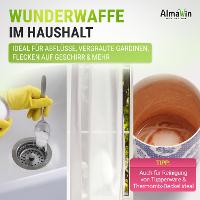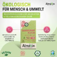 Anwendung in der Waschmaschine:Eignet sich hervorragend zum Entfernen von bleichbaren Flecken wie Rotwein, Kaffee, Tee, Obst, Gemüse, Erde oder Gras auf weißer und farbechter Buntwäsche sowie zum Bleichen und Aufhellen von vergrauter weißer Wäsche. Dosierung: Als Fleckensalz oder Bleichmittel: 1 Esslöffel (25 g) Sauerstoffbleiche zusätzlich zum Waschmittel in das Dosierfach geben. Für strahlend weiße Gardinen: 6 Esslöffel (150 g) in das Dosierfach der Waschmaschine geben und ohne Waschmittel waschen. Bitte Pflegehinweise der Textilhersteller beachten. Nicht geeignet für Wolle und Seide.Anwendung in der Spülmaschine:AlmaWin Sauerstoffbleiche entfernt wirksam Verfärbungen am Geschirr, wie Tee- oder Kaffeeflecken. Dosierung: 1 Teelöffel (15 g) Sauerstoffbleiche zusätzlich zum Maschinenspülmittel/Tab in das Dosierfach geben.Tipp zur Abflussreinigung:1 Esslöffel (25 g) Sauerstoffbleiche in den Abfluss geben, mit 1 Tasse heißem Wasser nachspülen, einwirken lassen. Regelmäßige Anwendung beugt Gerüche und Verstopfungen vor.