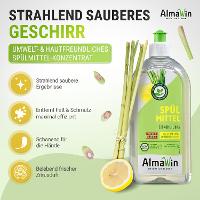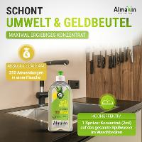 Ein Spritzer (2 ml) ins Spülwasser genügt. Nur bei sehr fettigen Pfannen und Töpfen sollte höher dosiert werden.Für die manuelle Geschirrreinigung. AlmaWin Spülmittel bitte sparsam dosieren.