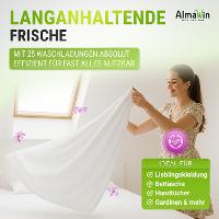 With its mild formula and the wonderfully natural fragrance of verbena and eucalyptus oil from controlled organic cultivation, our organic laundry fragrance pampers even skin-sensitive people with wonderfully fresh-smelling laundry, for wonderfully fresh favorite items that smell good for a long time.AlmaWin organic laundry fragrance Verbena is certified by Ecogarantie. AlmaWin products have been successfully dermatologically tested. This guarantees good skin compatibility.