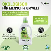 AlmaWin detergent for darks and blacks is particularly gentle on fibers and colors. So that blacks stay deep black - without any fading or detergent residue on the laundry. It imparts a lemony-fresh verbena fragrance so that you can enjoy your "little black dress" for a long time!  The formula with soap nut extract contains no enzymes and is free from synthetic fragrances, colorants and preservatives. The detergent is vegan, eco-certified by Ecogarantie and successfully dermatologically tested. This guarantees good skin compatibility.