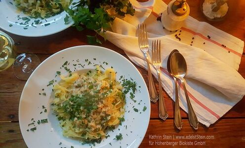 Unter den aufgeführten Rezepten findet sich auch die eine oder andere Idee von Kundinnen oder Mitarbeiterinnen der Amperhof Ökokiste sowie die Rezepte des Monats unseres Verbandes Ökokiste e.V., dessen neueste Kreation der Thai-Ramen mit Pilzen und knusprigem Tofu ist.