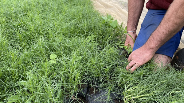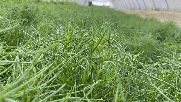 Agretti! Das Salzkraut wächst wieder in der Naturlandgärtnerei von Johannes Rutz. Er baut es seit wenigen Jahren an, doch nicht jedes Jahr gehen die Keime auf. Dieses Jahr hat es geklappt und ist nun reif für die Ernte, damit wir es ab Montag in Ihre Biokisten legen können.