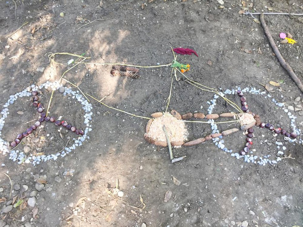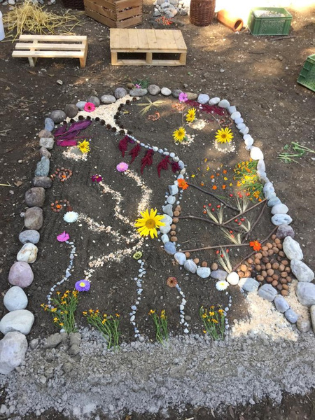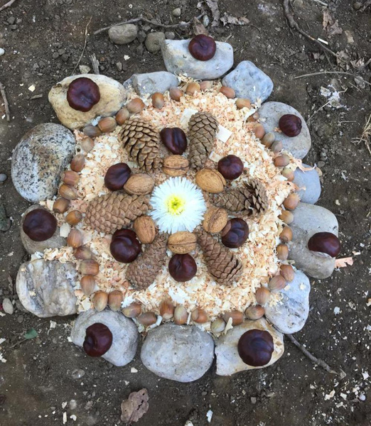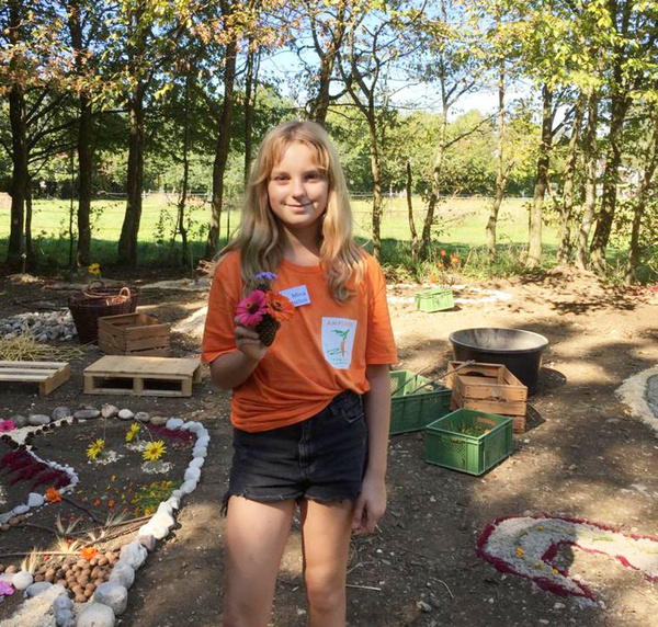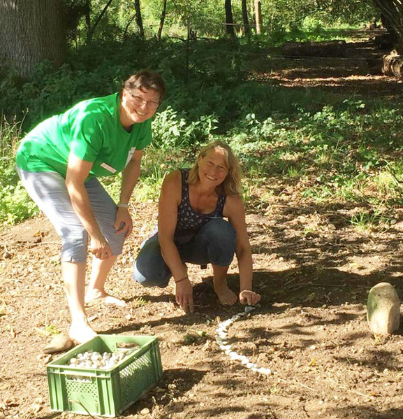 Wenn Besucher vom Gewusel auf dem Hoffest eine Ruhepause suchten, kamen sie bei einem Spaziergang über die Felder zum hinteren Bereich, in dem mit Naturmaterialien Mandalas gelegt werden konnten. Hier war es ruhiger, schattiger und jeder konnte für sich etwas gestalten. Wir haben eine kleine Auswahl zusammengestellt, die das Team Naturmandala um Evelyn, Susanne und Mina begleitet hat.