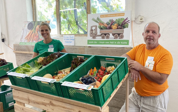 Sabrina und Stephan von der Kundenbetreuung erklärten die Inhalte verschiedener Biokisten aus unserem Sortiment und berieten über das Kistensystem.