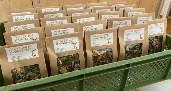 Vor den Kräuterfeldern, aber etwas weiter weg vom Geschehen am Hof, informierten und verkosteten Conny Braun-Zeitler und Gisela Kinzelmann die Amperhof-Kräuter. Beide führen auch jedes Frühjahr über die Wiesen und Felder des Amperhofes auf der Suche nach Wildkräutern, den Wildkräuter-Schmankerl Kurs kündigen wir rechtzeitig in den Terminen an.