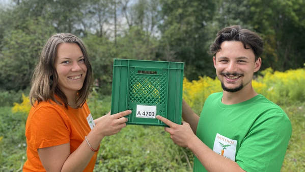 Sabrina und Steff beraten über die Biokisten und ihre Inhalte