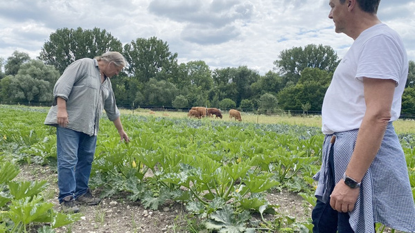 Töten steht jedoch absolut im Widerspruch zur Philosophie des Amperhofes. Leben schenken und leben lassen ist das Konzept. So müssen Helmut und seine Helfer auch immer wieder die vielen Schnecken, die sich auf die Salate stürzen in Kauf nehmen. An einem Feldrand waren nämlich keine Ringelblumen mehr vorhanden, um sie als Schneckenzaun zu pflanzen. So müssen Sie als Kunden dieses Jahr wieder auf die Sonnenblumen verzichten, weil die Schnecken sie aufgefressen haben, bevor sie wachsen konnten. Doch es gibt einen Ansatz für nächstes Jahr: regelmäßig das Gras an den Feldrändern mähen: die Schnecken verstecken sich im Sommer gerne tagsüber im hohen Gras und fressen nachts alles, was in ihrer Reichweite ist. Gibt es aber kein hohes Gras, können sie sich nicht verstecken und müssen sich anderweitig Nahrung beschaffen.