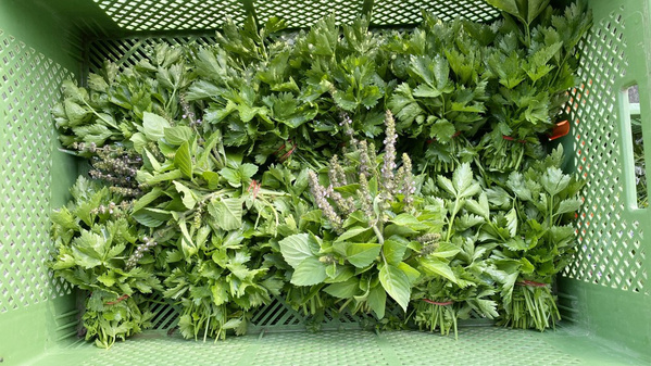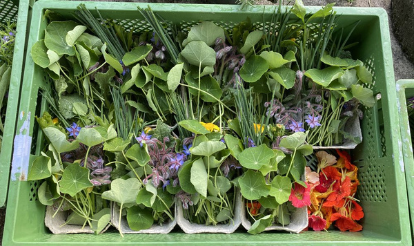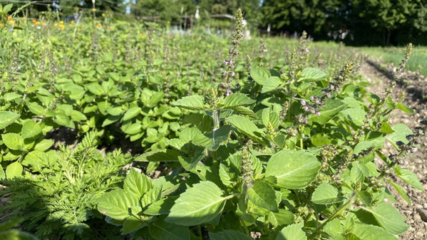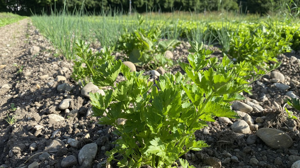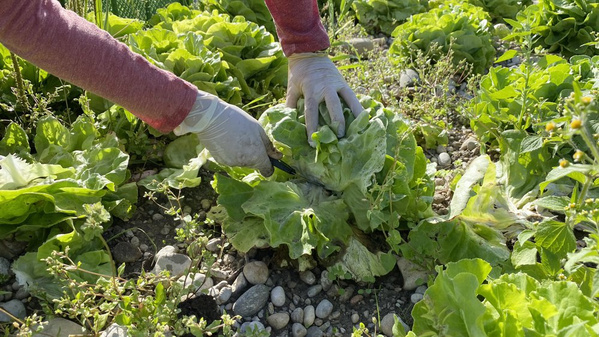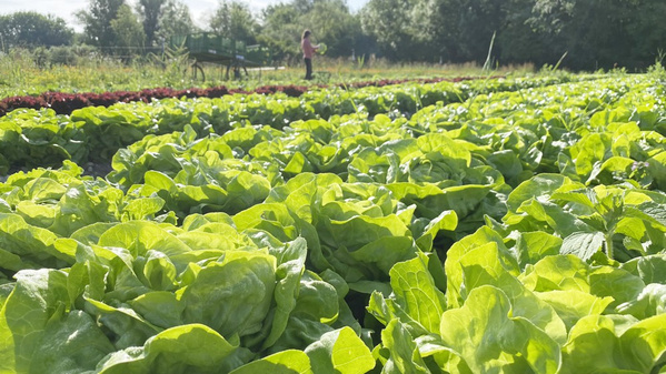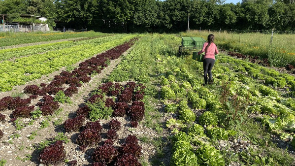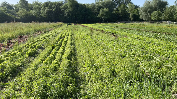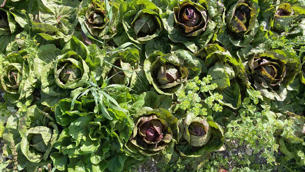 Wieso behaupten wir, die Salate sind würzig? Weil allerhand Beikraut zwischen den Köpfen wächst und den Boden damit aufwertet. Die sogenannten "Unkräuter" stehen für einen nährstoffreichen Boden und bedecken ihn, weshalb er weniger austrocknen kann. Dann bleibt mehr Wasser für die Salatpflanzen. Und es trauen sich weniger Schädlinge an die Salate heran. Die sind dann beschäftigt mit dem nahrhaften "Unkraut", genauso wie andere Insekten, die wir als Nützlinge verstehen, z.B. Bienen oder Marienkäfer.