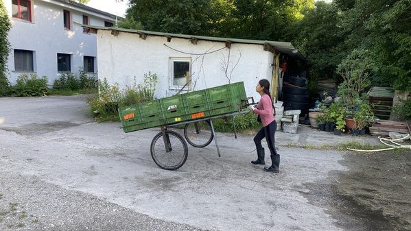 Die Felder nebenan locken ebenfalls zahlreiche Insekten an. Am Borretsch mit den lila Blüten und in den gelben großen Zucchiniblüten tummeln sich zahlreiche Hummeln und Bienen. Am Privathaus hat Gisela den seltenen Schmetterling Taubenschwänzchen oder Kolibrischwärmer am mexikanischen Salbei entdeckt und gefilmt.