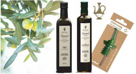 Grünfruchtiges, sehr feines und leichtes Olivenöl erster Güteklasse von Familie Kontogiannis. Die Olivenbäume auf dem Peloponnes mit Manaki- und Koroneiki-Oliven werden nicht künstlich bewässert, die Pflanzen werden gut beobachtet und mit Kräutersud gestärkt.
