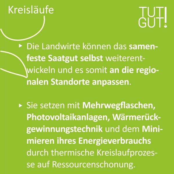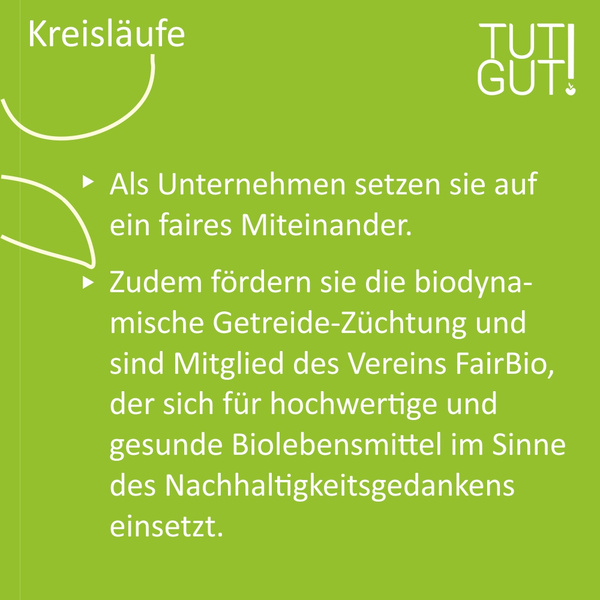 Inzwischen hat auch die Politik erkannt, dass eine Kreislaufwirtschaft sinnvoll ist, um zum Beispiel die europaweit rund 2,5 Milliarden Tonnen Müll pro Jahr zu reduzieren. Also weg von der Wegwerfgesellschaft. Die Idee der “Circular Economy” ist seit einigen Jahren im Kreislaufwirtschaftsgesetz (KrWG) gesetzlich verankert. Im Grunde tut die Politik also damit das, was wir immer schon gemacht haben. Sie fängt an, in sinnvollen, nachhaltigen Kreisläufen zu denken. Noch sinnvoller wäre es natürlich, wenn wir von vornherein so produzieren, dass am Ende gar kein Abfall entsteht. Das hat der Chemiker Prof. Martin Braungart in Zusammenarbeit mit dem amerikanischen Architekten William McDonough bereits in den 90er Jahren erkannt und den “Cradle to Cradle” Ansatz entwickelt. Idee dahinter sind geschlossene Stoffkreisläufe – Unternehmen machen sich also schon im Vorfeld der Produktion Gedanken, wie sie ihre Produkte so gestalten, dass am Ende alles vollständig wieder zu neuen Produkten wiederverwertet werden kann. Für die Herstellung nutzen sie erneuerbare Energien. Alles läuft also dauerhaft im Kreis. Der Ansatz wurde 2022 mit dem deutschen Nachhaltigkeitspreis ausgezeichnet. Nun aber genug von Kreisen, sonst drehen wir uns am Ende doch noch selbst im Kreis, lieber nochmal die Erinnerung an das kompromisslose geradeaus gehen. Das tun auch die Erzeuger mit ihren Produkten, die wir Ihnen für diesen TUT GUT! Monat ausgesucht haben. In nachhaltigen Kreisläufen kompromisslos Gutes tun. Also lassen Sie uns gemeinsam etwas ins Rollen bringen und diese Erzeuger unterstützen.