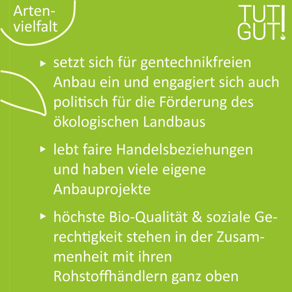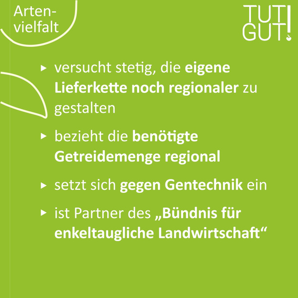 Wir als Ökokiste können noch bewusster regionale, biodiversitätsfreundliche Produkte vermarkten. Darüber hinaus müssen wir grundsätzlich die Wahrnehmung für den Wert von biologischer Vielfalt erhöhen und immer wieder Zusammenhänge erklären, um das Bewusstsein für ein nachhaltiges Konsumverhalten voranzubringen. Aus diesem Grund haben wir Ihnen im Rahmen unserer TUT GUT! Aktion im Mai Produkte von Erzeugern herausgesucht, die sich das Thema Artenvielfalt auf ihre Fahnen geschrieben haben und mit gutem Beispiel vorangehen.