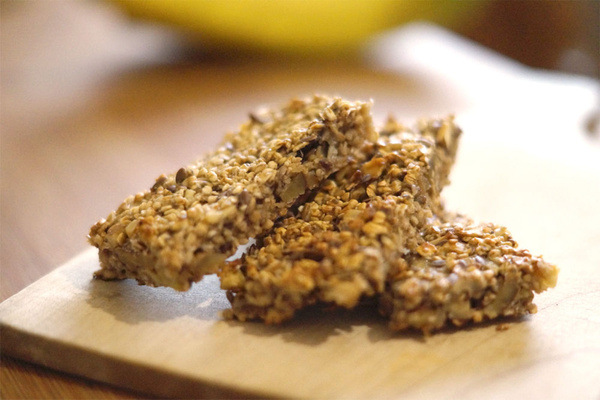 100g Walnüsse, 100g Quinoa gepufft, 100g Haferflocken, 3 EL Leinsamen, 1 Ei, 1 Banane, 10 EL Apfelsaft, 10 EL Sojadrink Vanille, 3 EL Honig, ½ TL Vanillezucker, 1 Limette