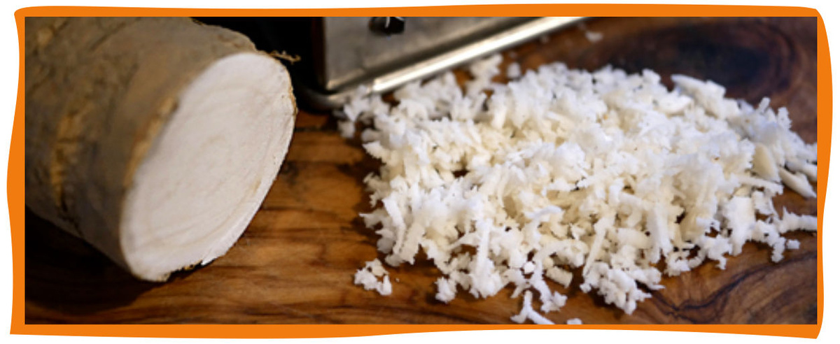 Der zum Würzen verwendete Pflanzenteil ist die pfahlartige, bräunliche Wurzel mit ihrem weißen, holzigem Fleisch, die bis zu 60 cm lang werden kann.