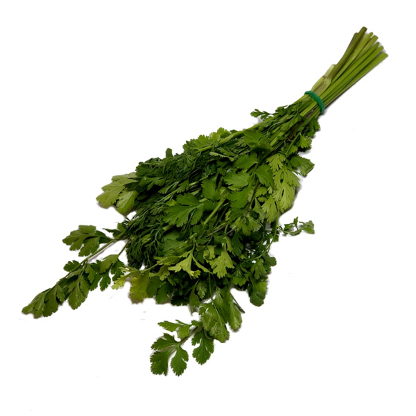 Frisches Korianderkraut (gelegentlich wegen des an Wanzen erinnernden Aromas der Blätter auch als „Wanzenkraut“ bezeichnet) sieht ähnlich aus wie glattblättrige Petersilie.