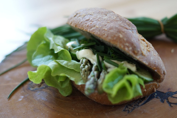 Vegetarisches Spargelsandwich mit frischem Schnittlauch,