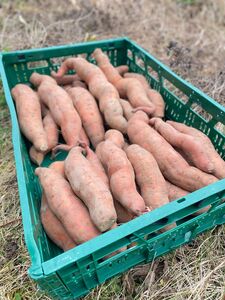 Geerntet wird etwa Anfang bis Mitte Oktober mittels eines Siebkettenroders. Nach der Ernte werden die Süßkartoffeln dem sogenannten „Curing“ unterzogen. Dabei lagern sie etwa 14 Tage bei 30°C und 90% Luftfeuchte. Neben einer Verhärtung der Schale entwickelt sich hier auch der typisch süße Geschmack.