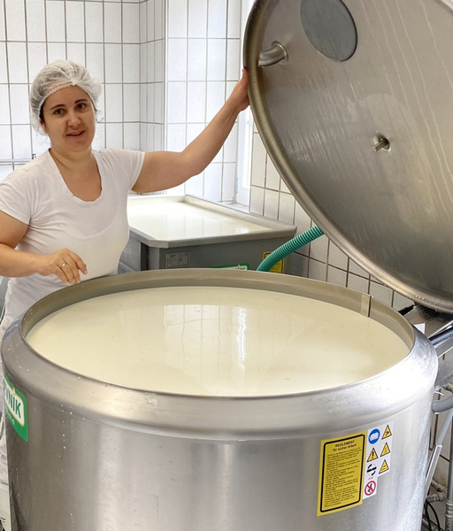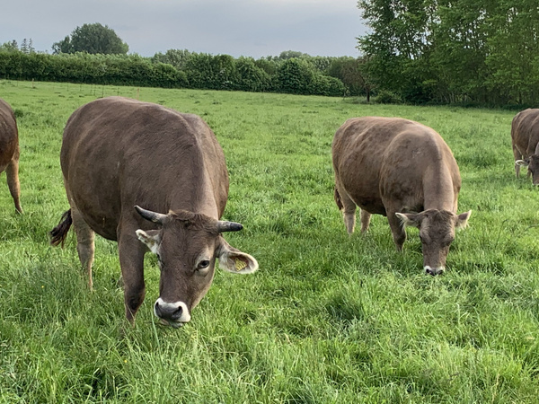 Das Braunvieh hat noch eine andere Besonderheit, erzählt uns Johanna: Seine Milch gilt als besonders bekömmlich, weil sie einen hohen Anteil des Beta-Kaseins A2 enthält. Alte Rassen haben nur diese Milch produziert, deswegen nennt man sie auch Urmilch. Des Weiteren hat die Milch durch den hohen Anteil an Kappa-Kasein B eine höhere Labfähigkeit und Käseausbeute.
