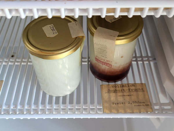 Das ist perfekt für die Schwerpunkte des Hofes: Die Heumilch der Tiere wird nicht für den Verkauf abgefüllt, sondern zu Joghurt und verschiedenen Käse verarbeitet. Das übernimmt Johannas feste Mitarbeiterin Petra. Der Joghurt hat uns geschmacklich so überzeugt, dass wir verschiedene Sorten mit und ohne Fruchtzubereitung aufgenommen haben. Den Dürnecker Käse schneiden, verpacken und liefern wir schon seit vielen Jahren aus, als Johannas Eltern den Betrieb noch selbst führten. In der Zwischenzeit ist viel passiert: Die Hofkäserei wurde umgebaut und die Rezepte für die Käse sind überarbeitet worden. Nun möchten wir die nächste Generation mit ihrer Idee für den Hof unterstützen und freuen uns auf die Zusammenarbeit. Zum Verkaufsstart wird uns Johanna daher am Hoffest besuchen und eine kleine Auswahl an Joghurt und Käse zur Verkostung mitbringen.