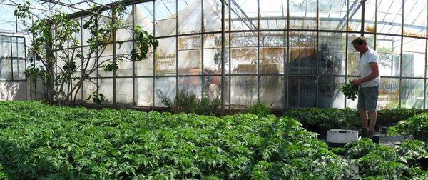 Im Sommer ist der Schwerpunkt der Arbeit der Fruchtgemüseanbau. Dann hängen an den hochrankenden Tomaten und Gurken pralle, satte Früchte zum Ernten von Anfang Juli bis September. Eine weitere Spezialität der Gärtnerei ist die eigene Jungpflanzenanzucht. Alle angebauten Kulturpflanzen werden im eigenen Betrieb vorgezogen, d.h. in kleine gepresste Bodenwürfel eingesät, gepflegt, gewässert und dann erst an Ort und Stelle gepflanzt. Dies ist eine der Hauptarbeiten im Februar, um für die Sommerkulturen zeitig pflanzen zu können. Außerdem werden im Februar und März die Kräuter wie Salbei, Rosmarin, Petersilie für den Sommer gepflanzt. Auch Radieserl und Radi werden nun gesät, die Sie dann im Frühsommer in Ihrer Kiste finden.