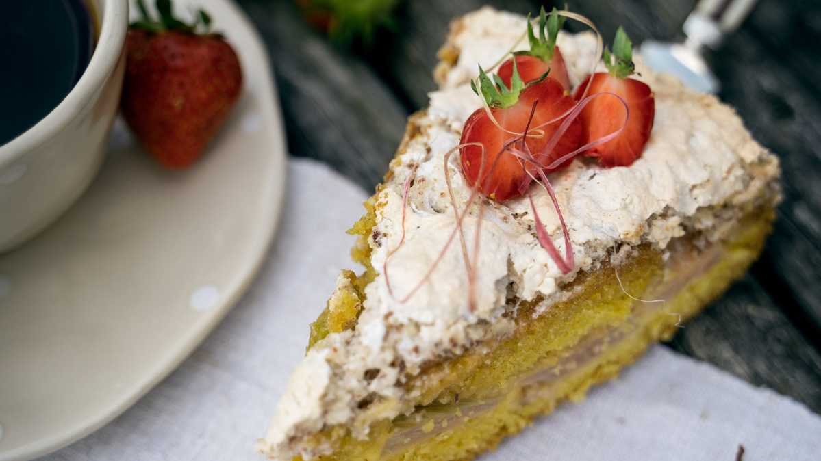 streichen oder mit dem Spritzbeutel daraufspritzen. Den Rhabarberkuchen