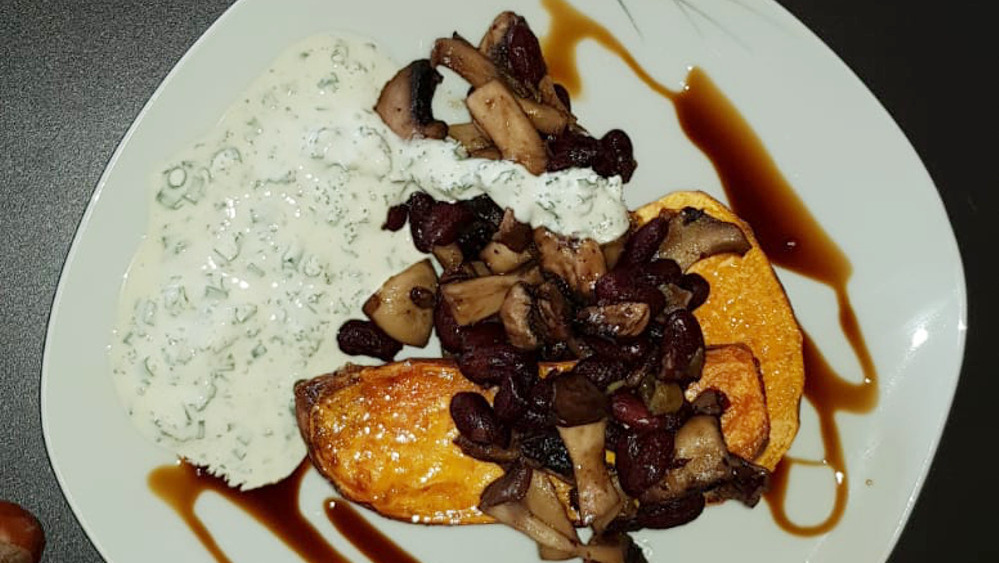 Gebackene Süßkartoffeln mit Pilzen