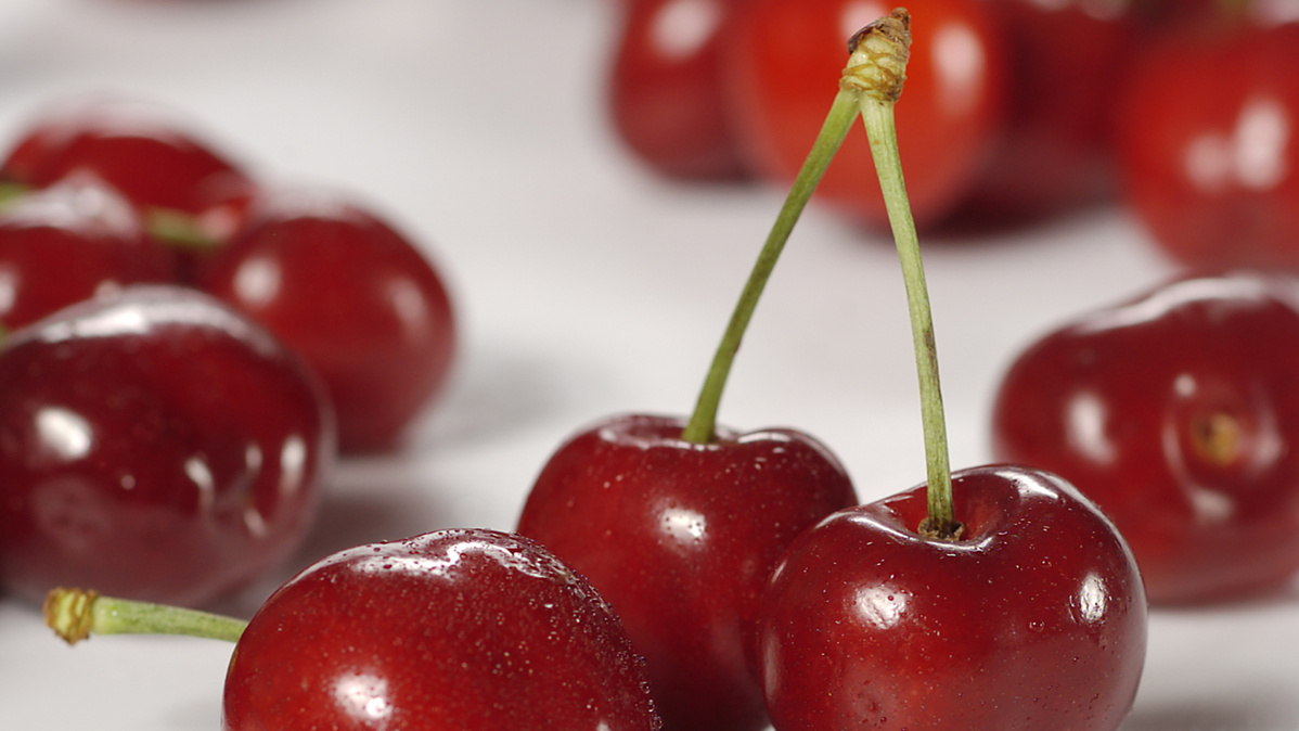 2/3 der Streusel in eine gefettete Kuchenform drücken und die Kirschen darauf verteilen, dabei am Rand ca. 2 cm Abstand lassen.