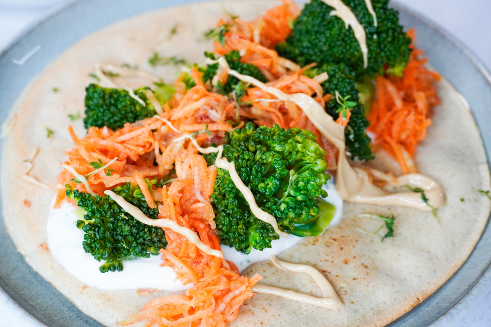 Kräuterquark und weiterer frischer Kresse toppen, einklappen und genießen.