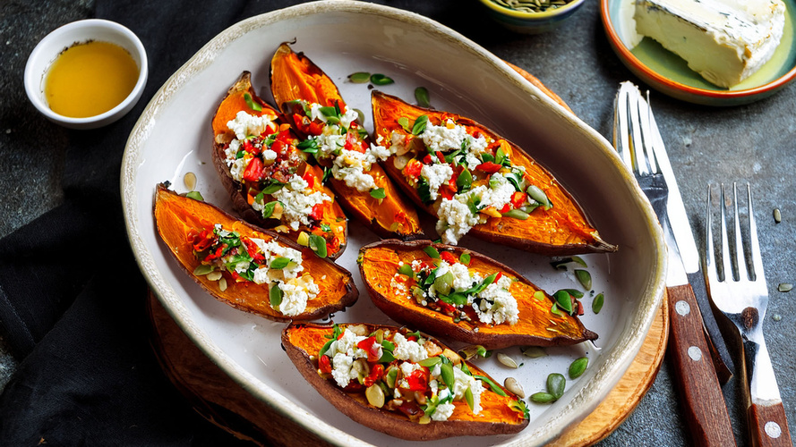 Gebackene Süßkartoffeln mit Schafskäse